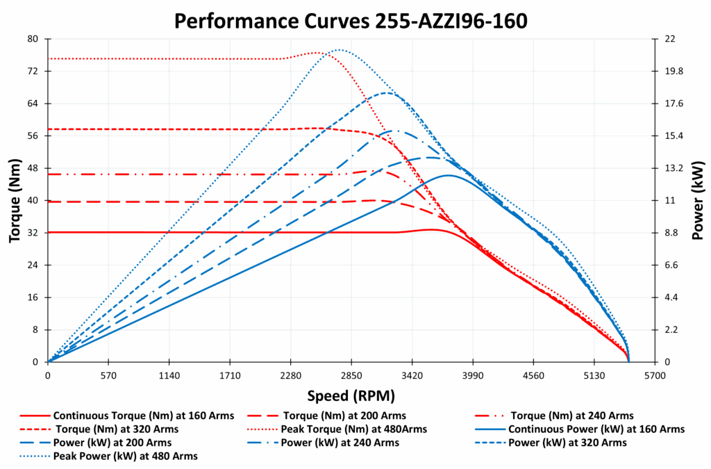 The 255-AZZI96-160 Permanent Magnet Synchronous Motor (PMSM) is a high-performance 12 kW 96VDC PM Synchronous motor, perfect for a variety of industrial and automotive applications. With over 90% efficiency, it ensures smooth, quiet, and energy-saving operation, making it an excellent choice for Electric and Hybrid vehicles, Agricultural equipment, Industrial Machinery, and more.