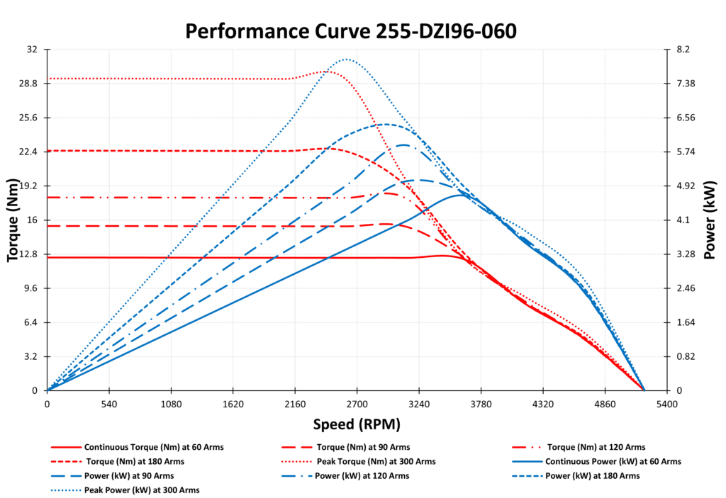 The 255-DZI96-060 Permanent Magnet Synchronous Motor (PMSM) is a high-performance 4.6 kW 96VDC PM Synchronous motor delivering over 90% efficiency for electric and hybrid vehicles, construction equipment, and industrial systems. For more options in the same 96V PMSM range, explore our lineup of high-efficiency 48V motors. Innotec Power also offers PMSM motors in 24V, 72V, 48V, 320V, and 565V variants for varied applications.