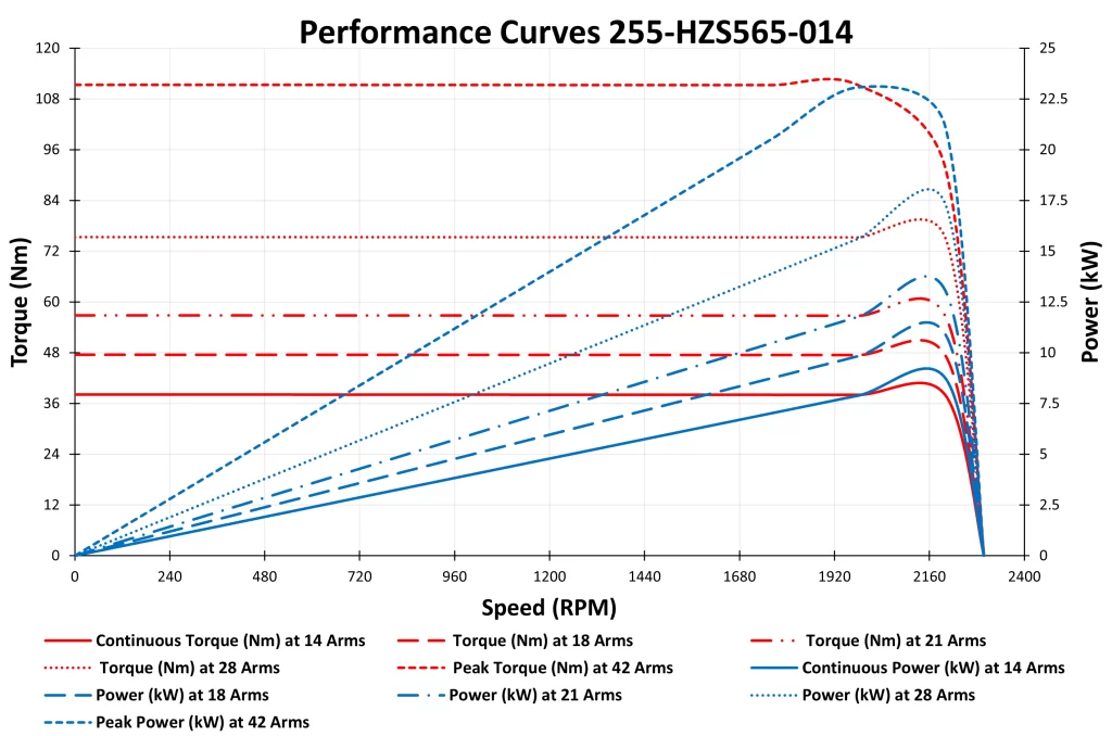 The 255-HZS565-014 High Voltage Permanent Magnet Synchronous Motor (PMSM) is a 7.8 kW 400VAC motor, which also delivers a remarkable peak power of 7.8 kW, built to provide high torque at controlled low speeds. With a rated speed of 1900 RPM, this motor offers a continuous torque of 38 Nm. It reaches a peak torque of 111.3 Nm, making it an ideal solution for applications requiring strong, steady motion and energy efficiency. It ensures optimal performance even under demanding load conditions. Designed with advanced PMSM technology and efficiency above 90%, this motor is perfect for electric vehicles, agricultural equipment, hybrid systems, and industrial machinery where precision, low RPM operation is essential.
