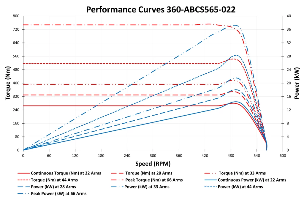 The 360-ABCS565-022 High Voltage Permanent Magnet Synchronous Motor (PMSM) is a 12 kW 400VAC motor, which also delivers a remarkable peak power of 35.8 kW, built to provide high torque at controlled low speeds. With a rated speed of 450 RPM, this motor offers a continuous torque of 264.5 Nm. It reaches a peak torque of 746.8 Nm, making it an ideal solution for applications requiring strong, steady motion and energy efficiency. It ensures optimal performance even under demanding load conditions. Designed with advanced PMSM technology and efficiency above 90%, this motor is perfect for electric vehicles, agricultural equipment, hybrid systems, and industrial machinery where precision, low RPM operation is essential.