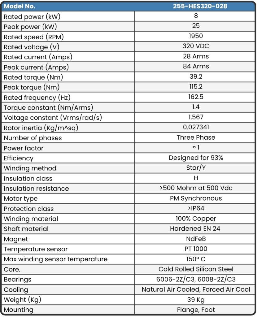 The 255-HES320-028 Permanent Magnet Synchronous Motor (PMSM) is a high-performance 8 kW 325VDC PM Synchronous motor delivering over 90% efficiency for electric and hybrid vehicles, construction equipment, and industrial systems. For more options in the same 48V PMSM range, explore our lineup of high-efficiency 48V motors. Innotec Power also offers PMSM motors in 24V, 72V, 96V, 320V, and 565V variants for varied applications.
