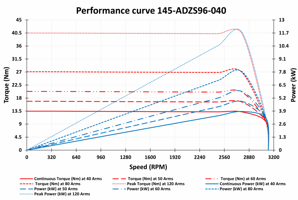This motor stands out with its impressive capabilities, delivering a peak power of 11.7 kW and a rated torque of 13.2 Nm while reaching a peak torque of 40.5 Nm. With a rated speed of 2700 RPM, it offers the perfect balance of power and efficiency, ensuring smooth and reliable performance in even the most demanding applications.