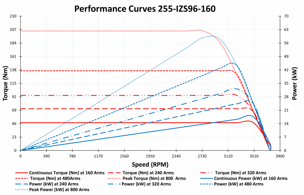 The 255-IZS96-160 Permanent Magnet Synchronous Motor (PMSM) is a high-performance 16 kW 96VDC PM Synchronous motor, perfect for a variety of industrial and automotive applications. With over 90% efficiency, it ensures smooth, quiet, and energy-saving operation, making it an excellent choice for Electric and Hybrid vehicles, Agricultural equipment, Industrial Machinery, and more.