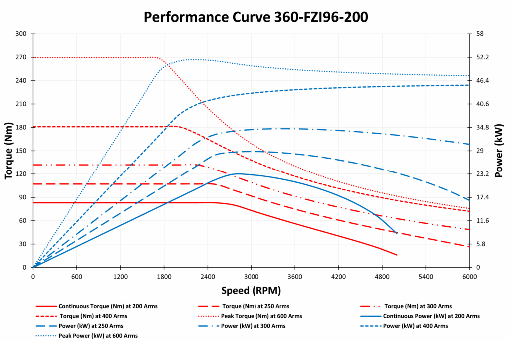 The 360-FZI96-200 Permanent Magnet Synchronous Motor (PMSM) is a high-performance 21 kW 96VDC PM Synchronous motor, perfect for a variety of industrial and automotive applications. With over 90% efficiency, it ensures smooth, quiet, and energy-saving operation, making it an excellent choice for Electric and Hybrid vehicles, Agricultural equipment, Industrial Machinery, and more.